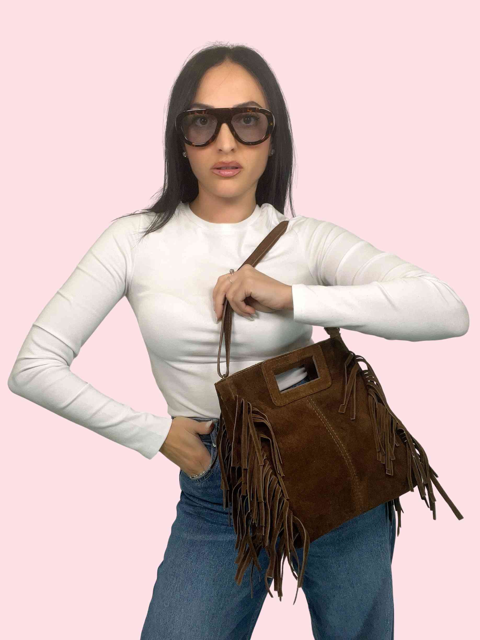 MAYA BOHO FRINGE BAG - DARK CHOCOLATE