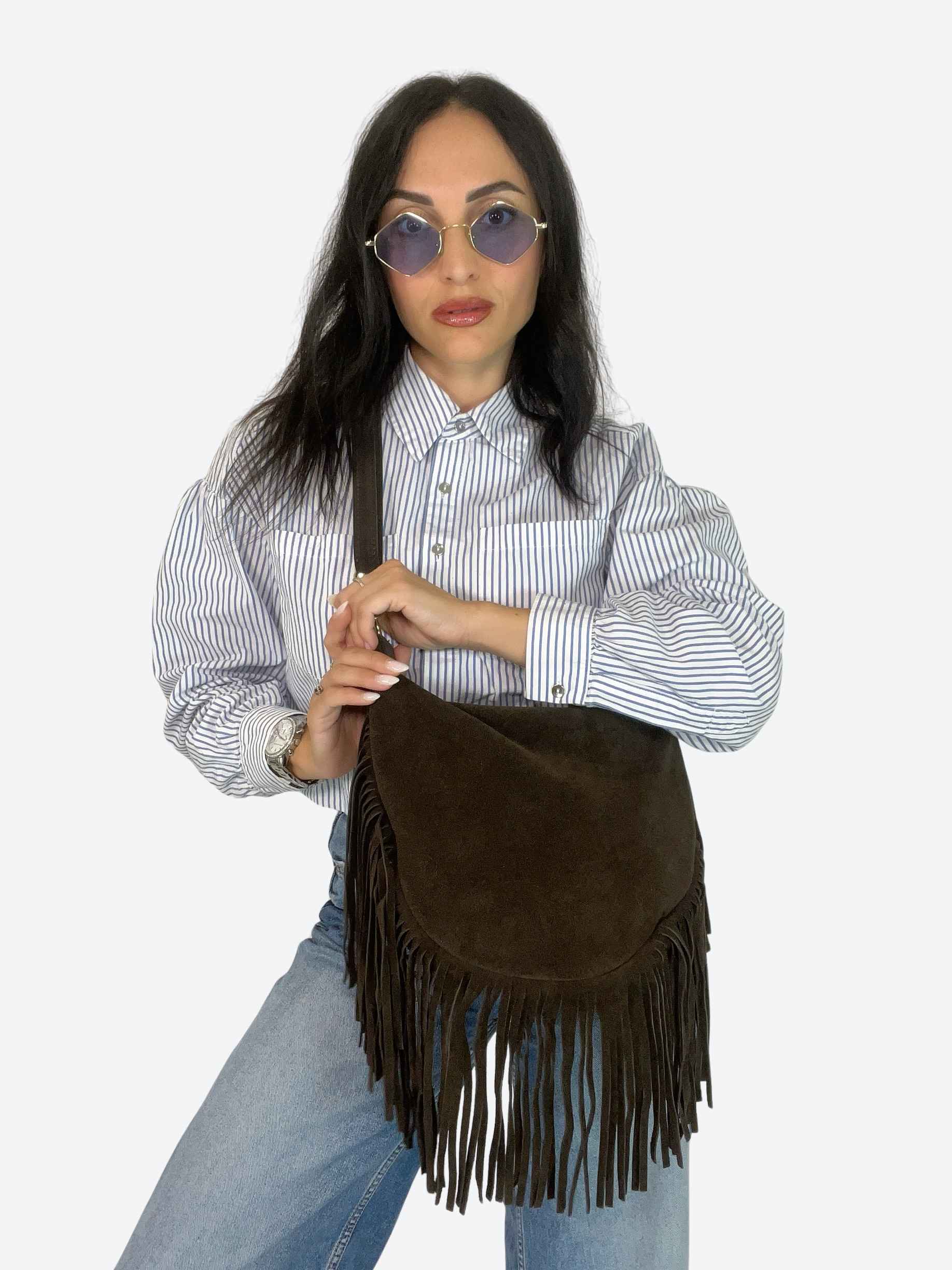 JANE - SUEDE FRINGE BAG DARK CHOCOLATE