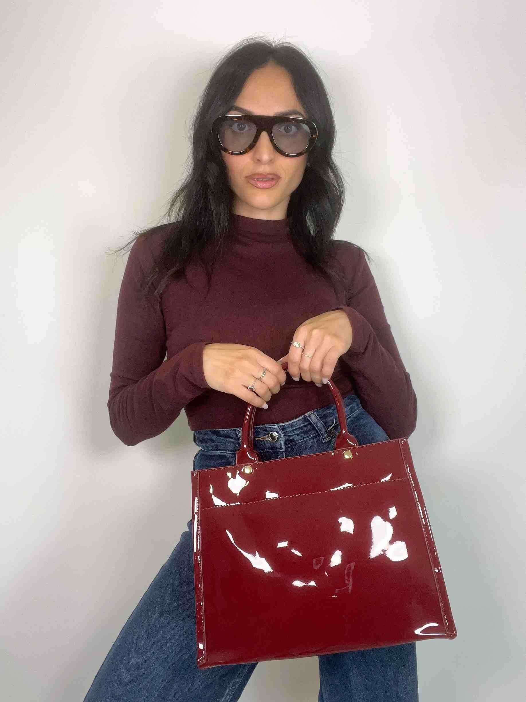 CASSANDRE SHINY TOTE BAG - GLOSSY BURGUNDY