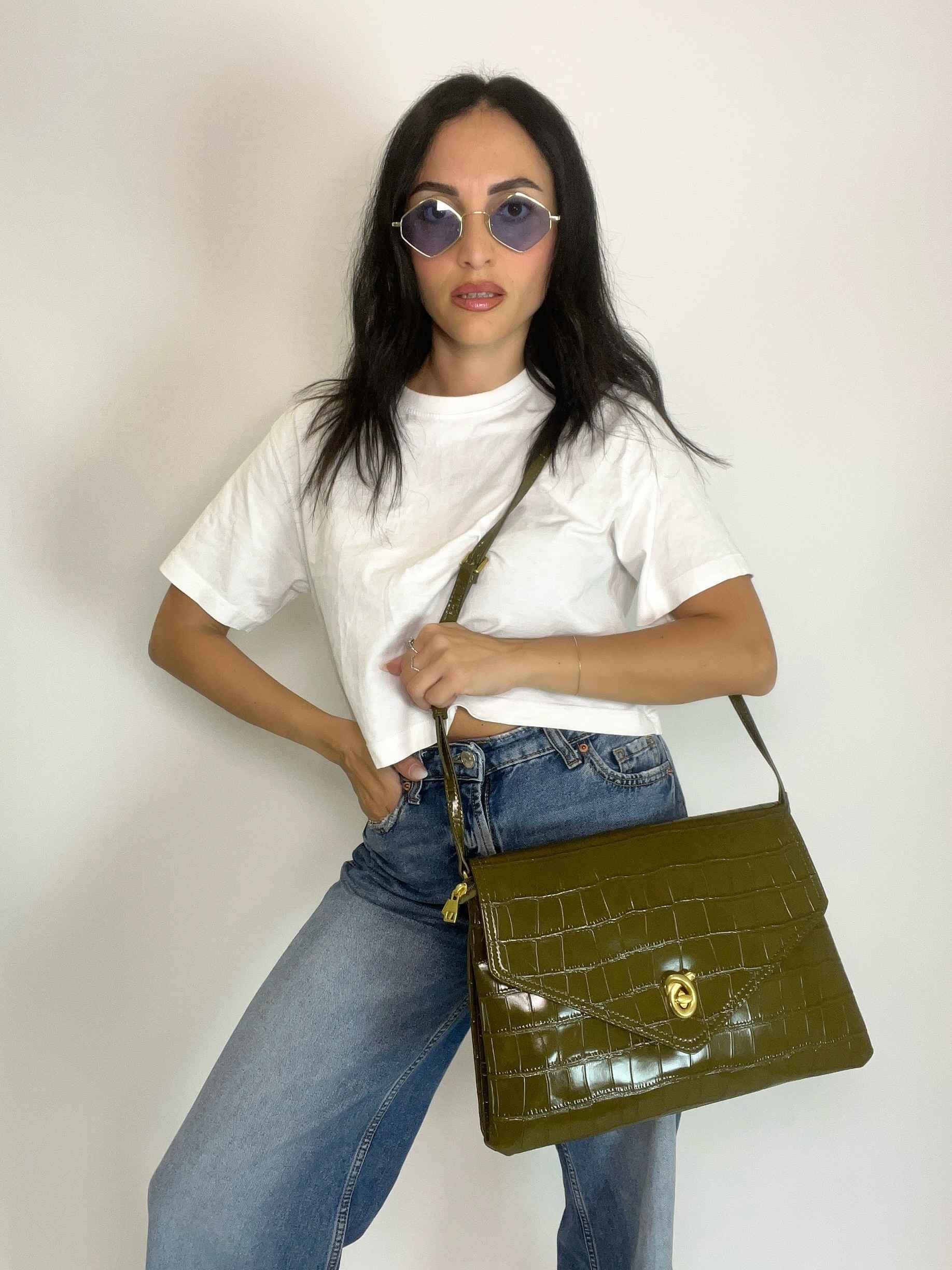 ÉCLAT ELLE - ENVELOPE CROC BAG OLIVE GREEN