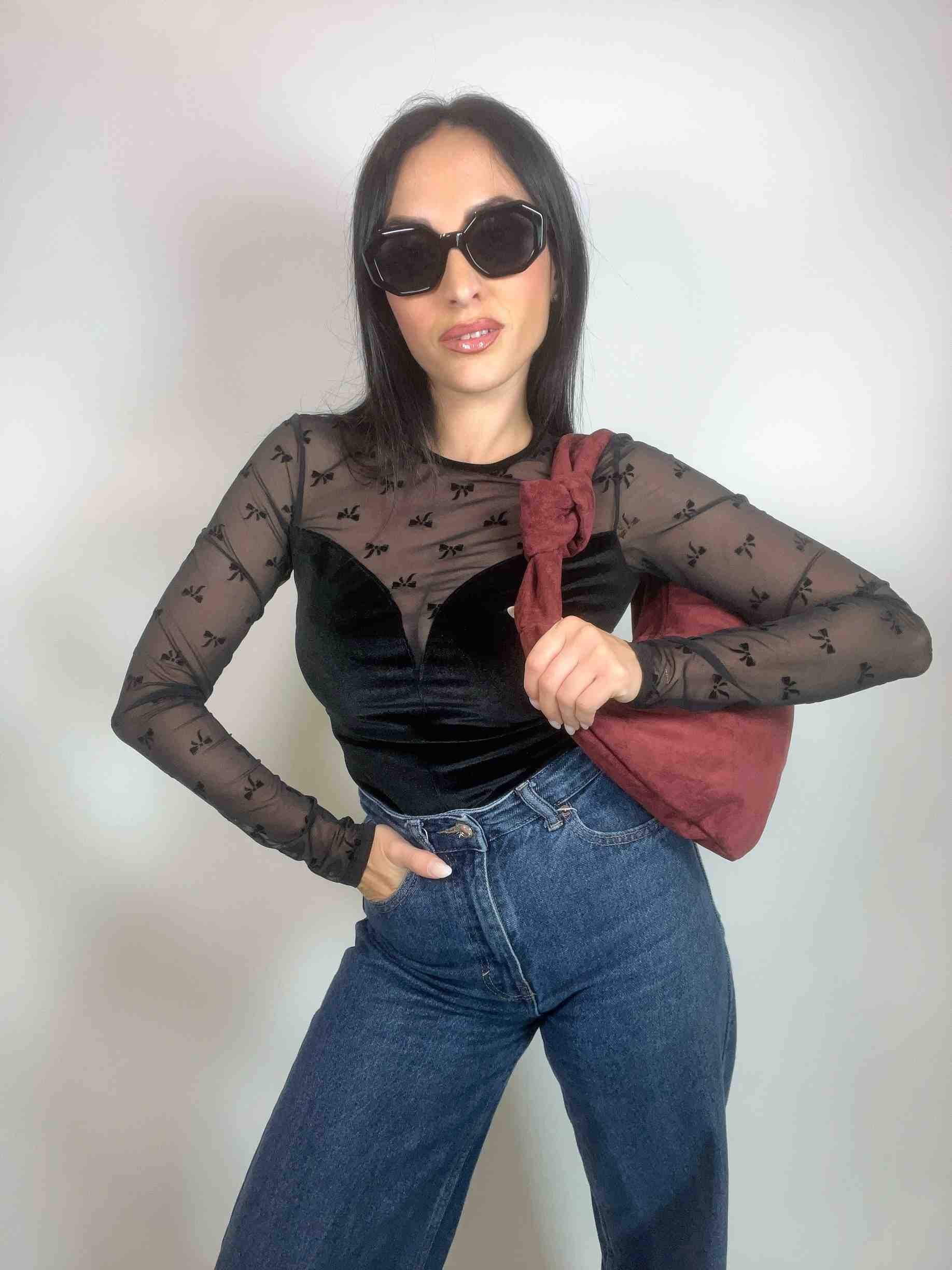Realizzata in morbida ecopelle effetto suede, si distingue per la sua texture vellutata e il manico annodato che aggiunge un tocco ricercato ad ogni outfit.