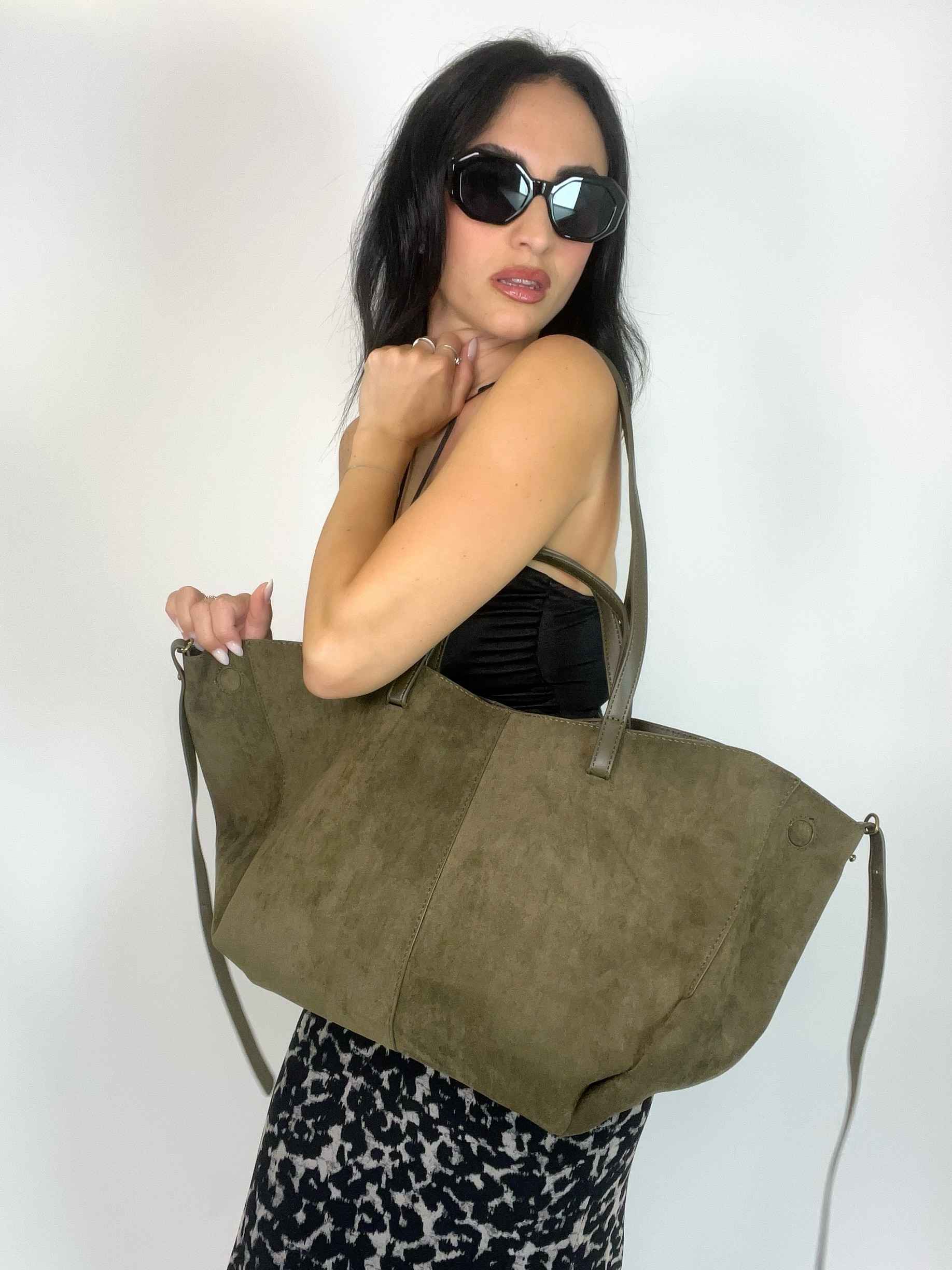 La borsa che unisce stile e funzionalità. Mia è realizzata in pelle vegana effetto camoscio, morbida e raffinata, pensata per chi cerca un accessorio elegante e cruelty free.