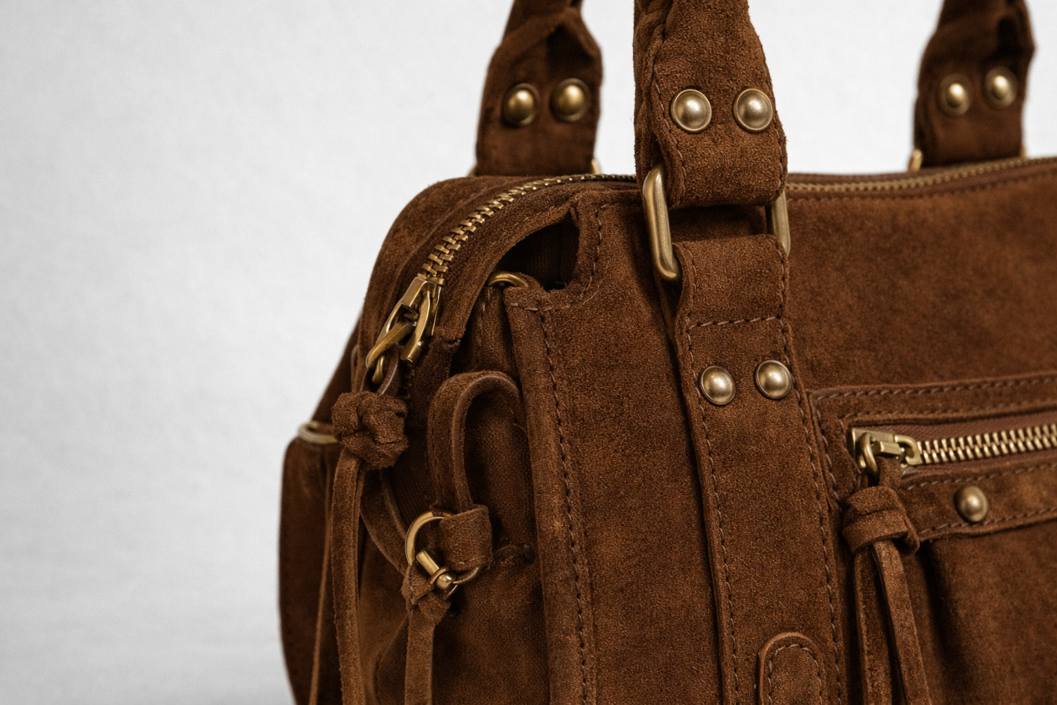 - Cuciture a vista, decise e artigianali, che ne esaltano il carattere
